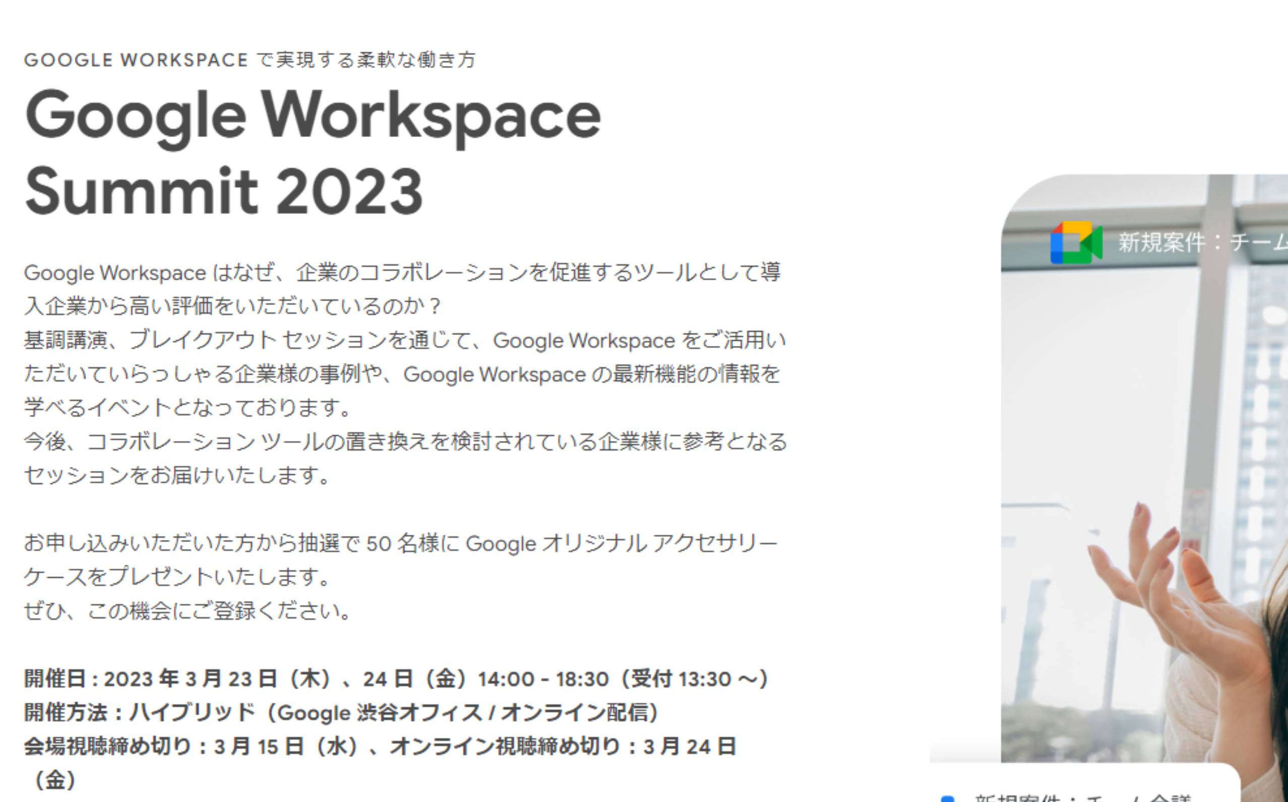 - 早割り来場チケット:50,000円(早割り:30,000円)